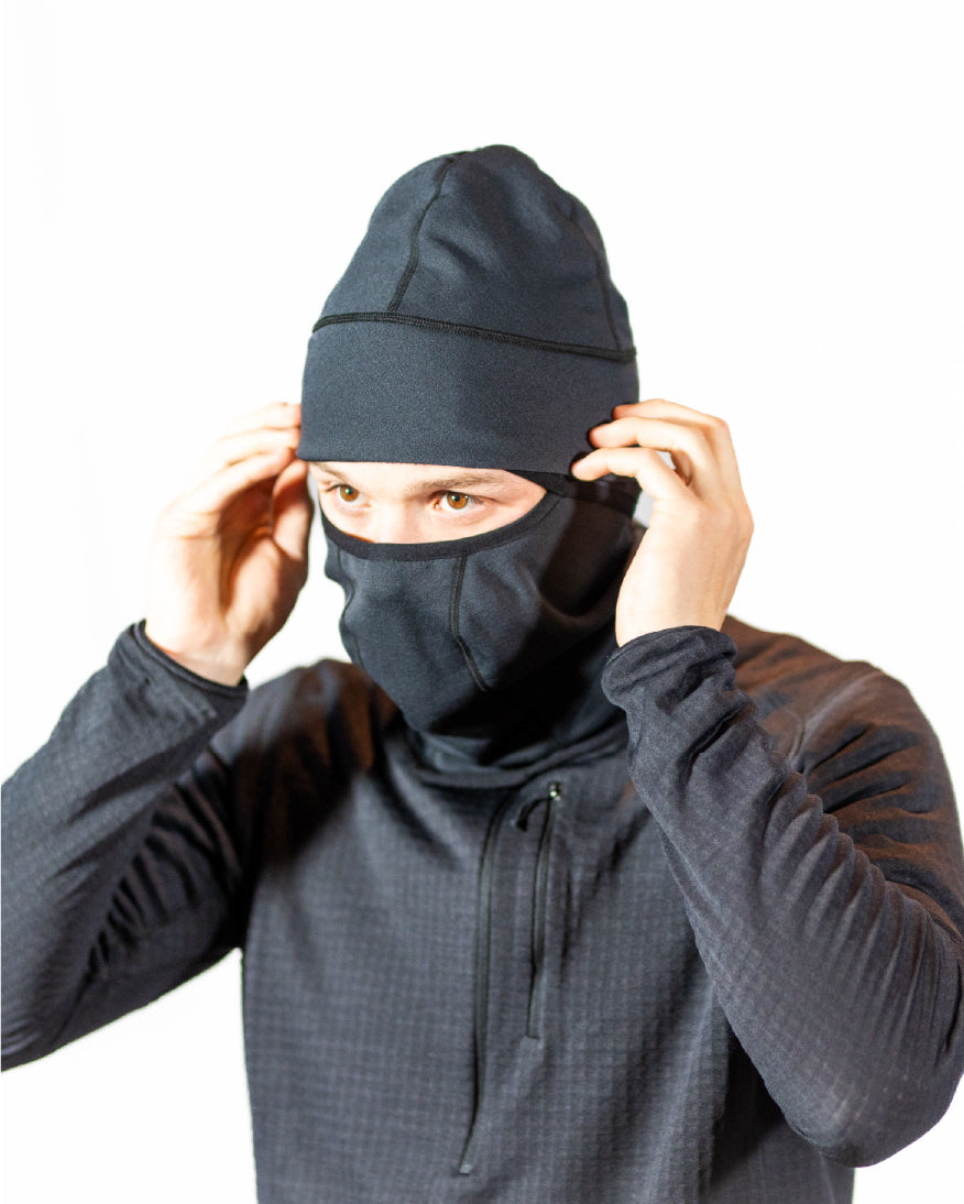 - smooth and flexible shape easily interfaces over a cap or balaclava, and can be pulled down around the skull for higher coverage or under-helmet integration